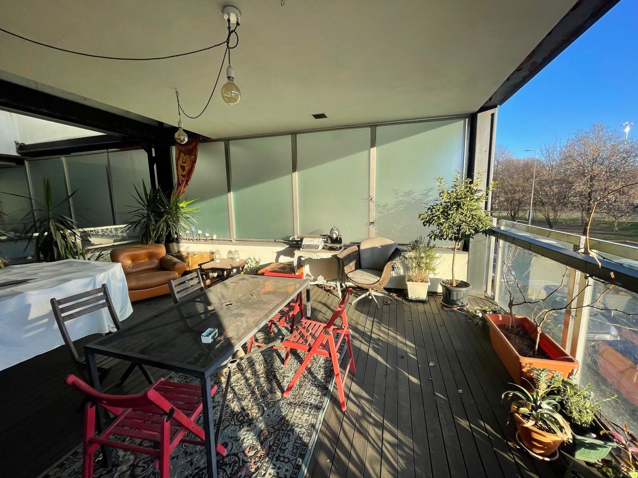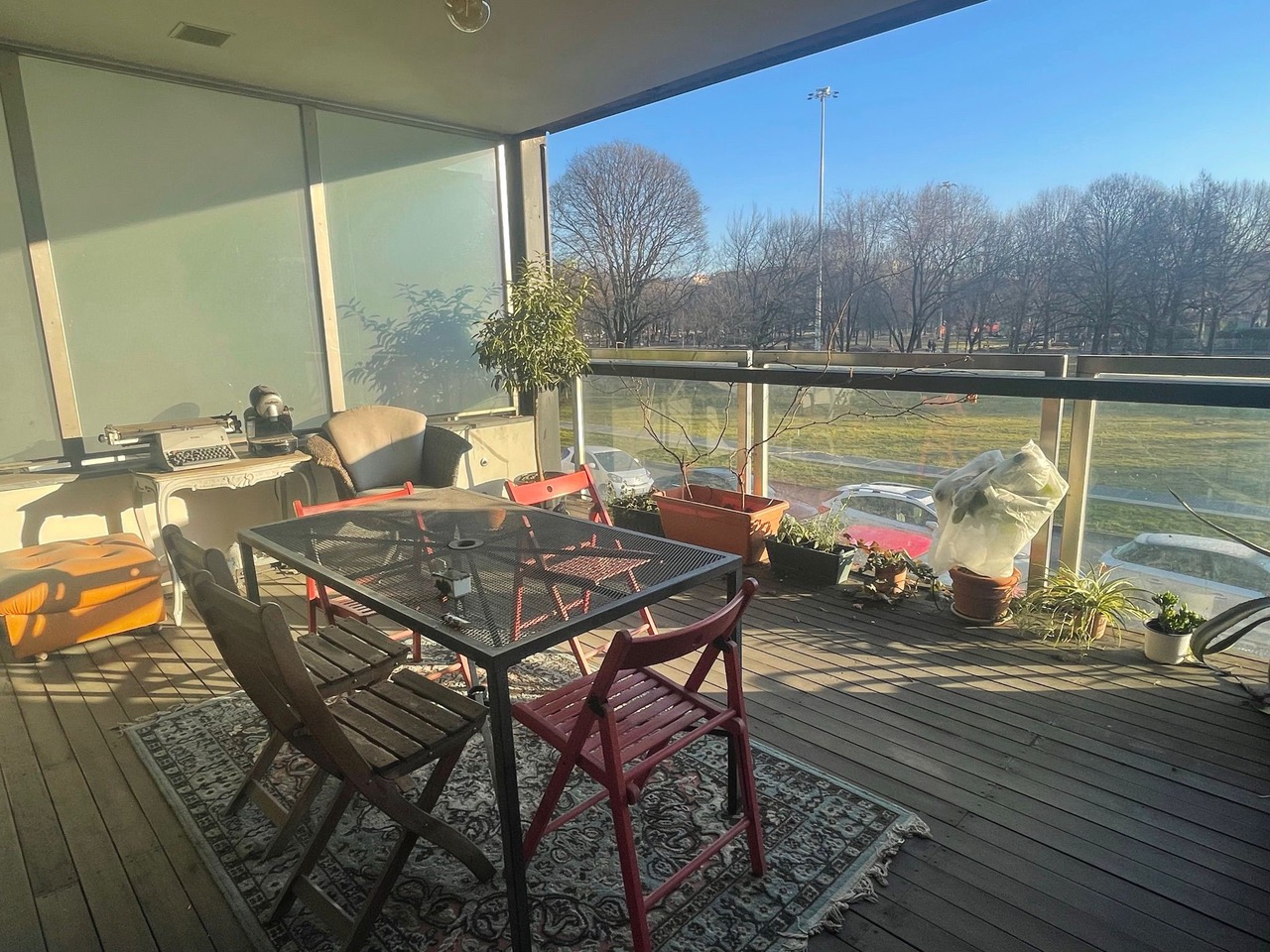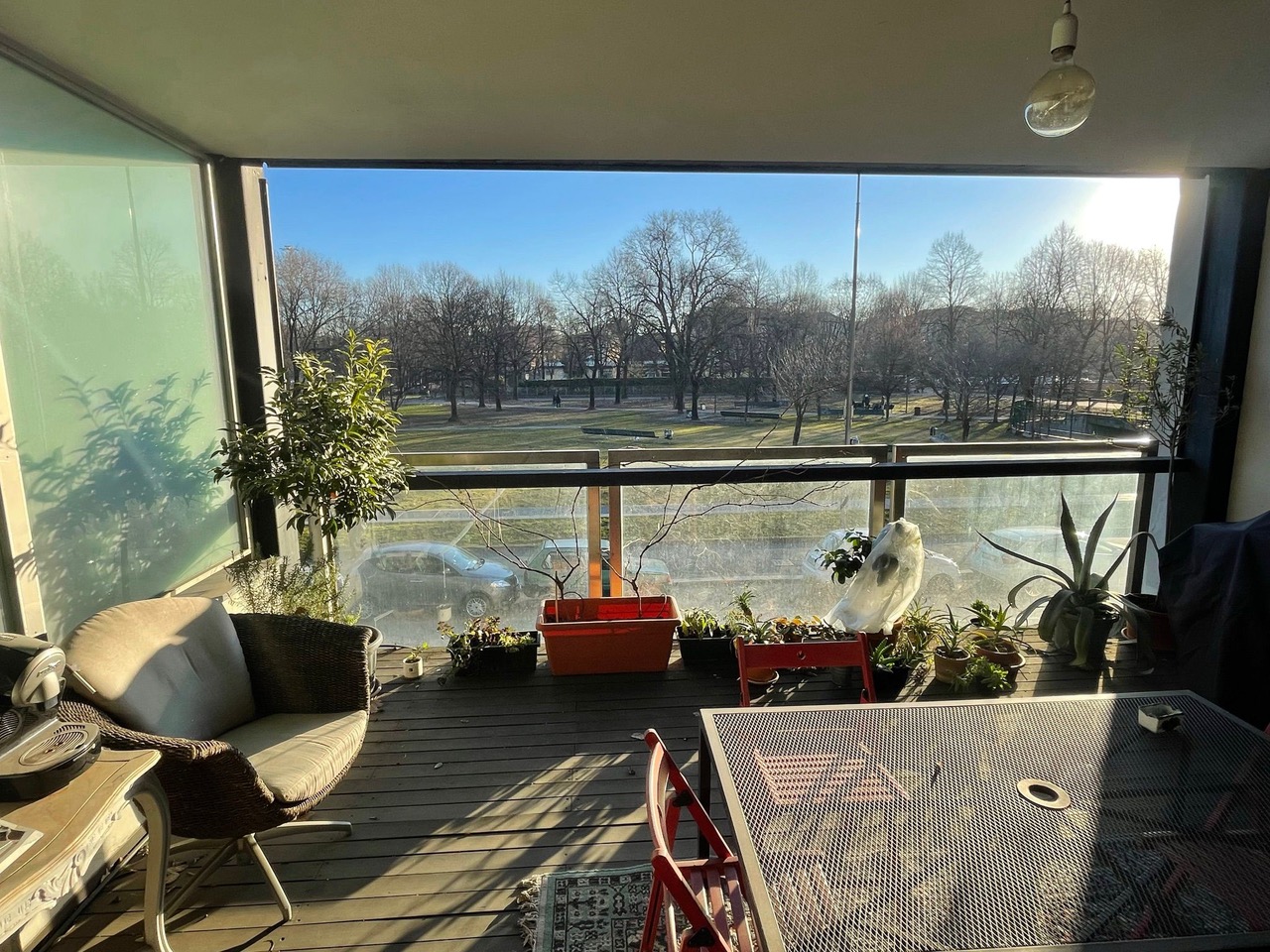 Terrazzo con vista sul parco, ideale per momenti di relax all’aria aperta;