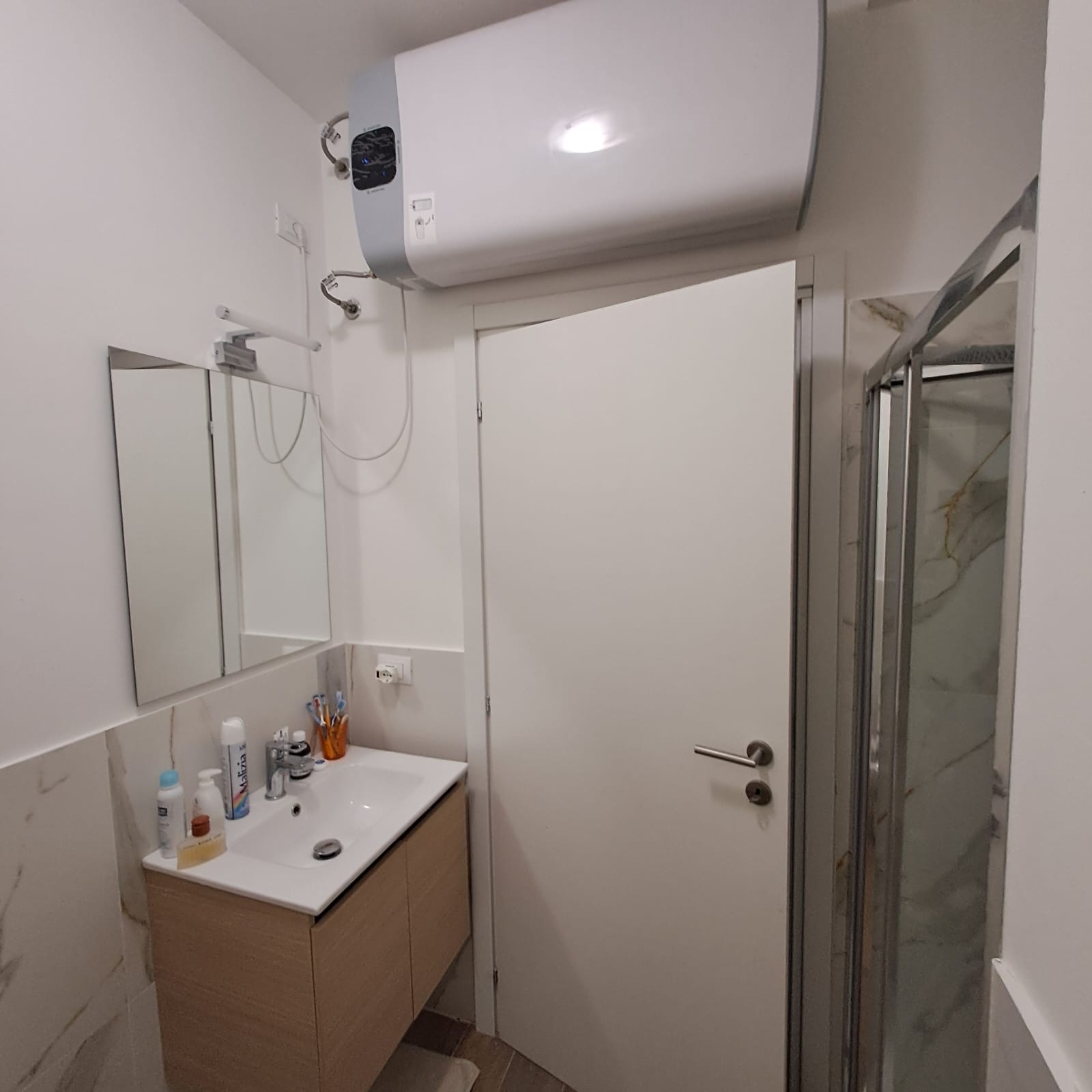 L’appartamento è così composto: corridoio, due camere da letto matrimoniali, ampia cucina abitabile (con divano-letto), bagno. E’ ubicato al primo piano con ascensore, ed è dotato di riscaldamento autonomo con fancoil. Il condominio dispone di portineria per tutto il giorno.