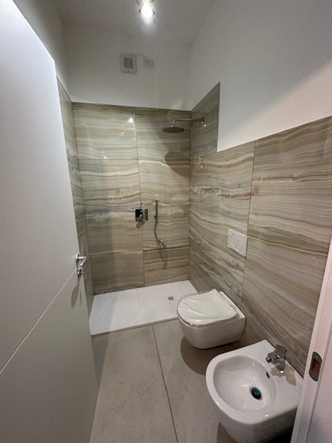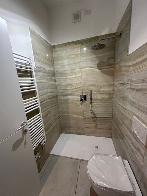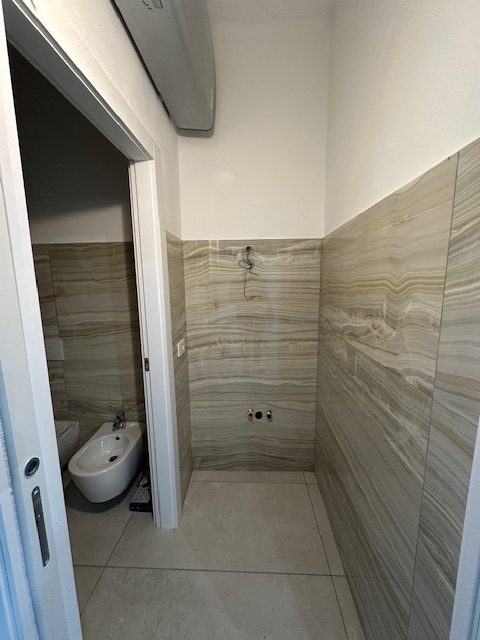 Dall’ambiente principale si accede all’antibagno, già dotato degli attacchi per il lavandino, e al bagno, con sanitari nuovi appena installati e un box doccia molto spazioso.