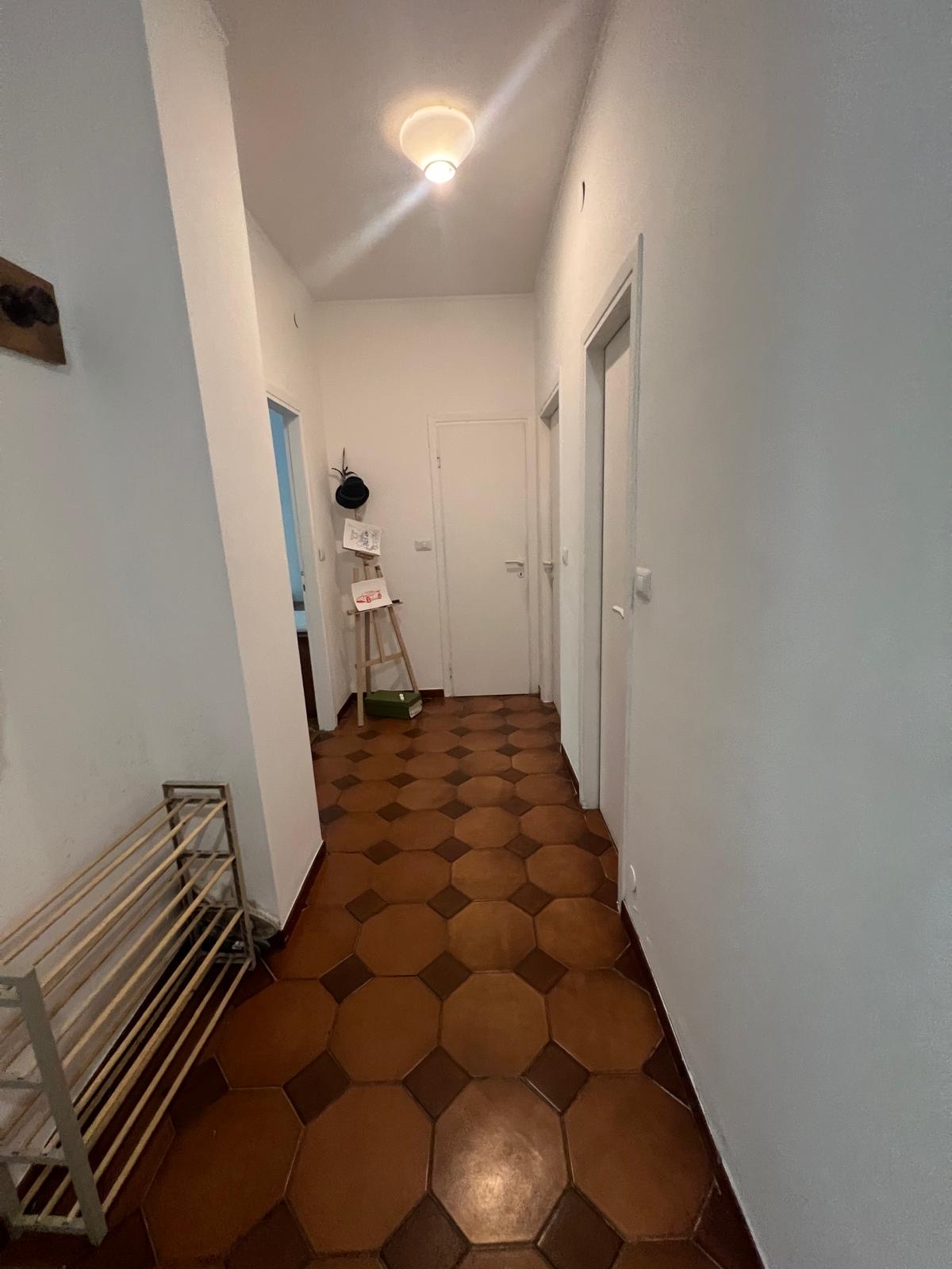 L’appartamento è così composto: tre camere da letto matrimoniali, due bagni, cucina abitabile, balcone.