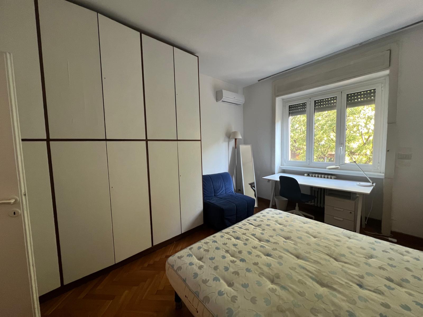 Proponiamo in affitto un’ampia stanza privata in appartamento condiviso. Completamente arredata con letto matrimoniale, armadio, scrivania e comodino.