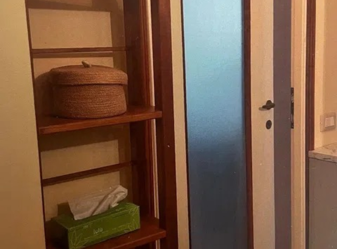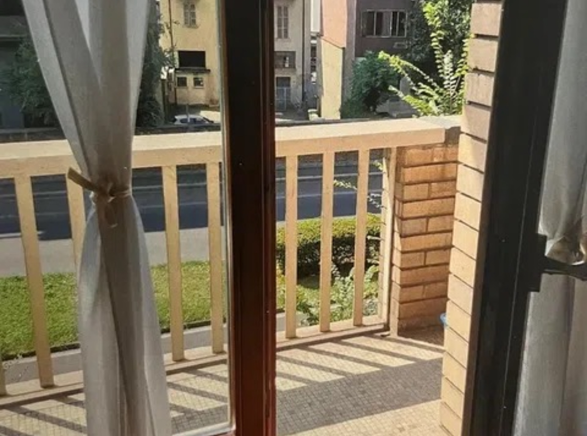 ingresso, spazio cucina, due camere da letto – una è occupata da una studentessa – ampio balcone, bagno, dispensa.